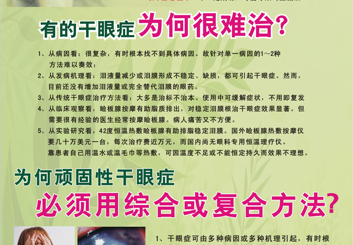 无奈之下,她只得到医院眼科就诊。医生在对陈女士的眼睛进行检查后,诊断其为顽固性干眼症,并已经引起较为严重的角膜炎。在朋友的介绍下用上了我所的综合干眼症仪,2个月后眼睛不干涩、不发红也不觉得刺痛了。